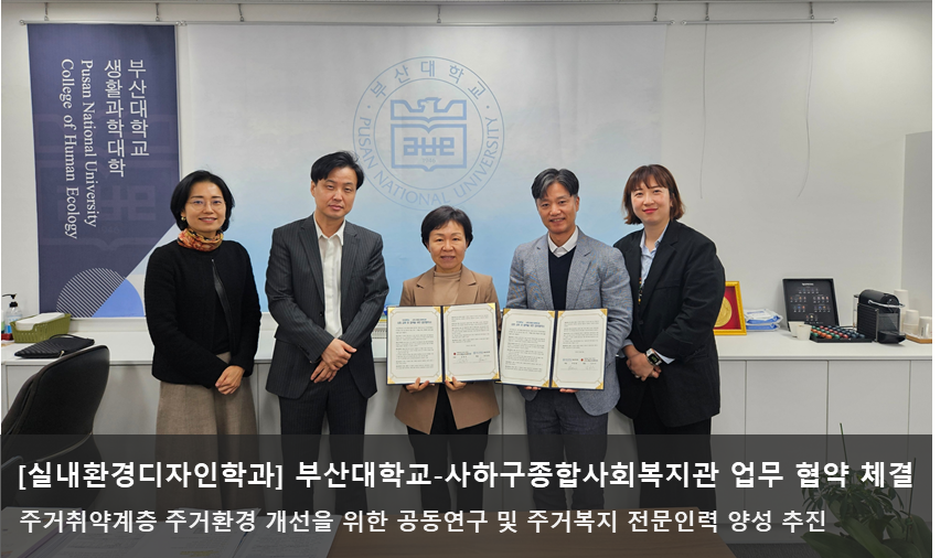 부산대학교 생활과학대학(학장 한정원)은 사하구종합사회복지관과 상호 교류 및 협력을 위한 업무협약(MoU)을 28일 오후 생활과학대학 학장실에서 체결했다고 밝혔다.