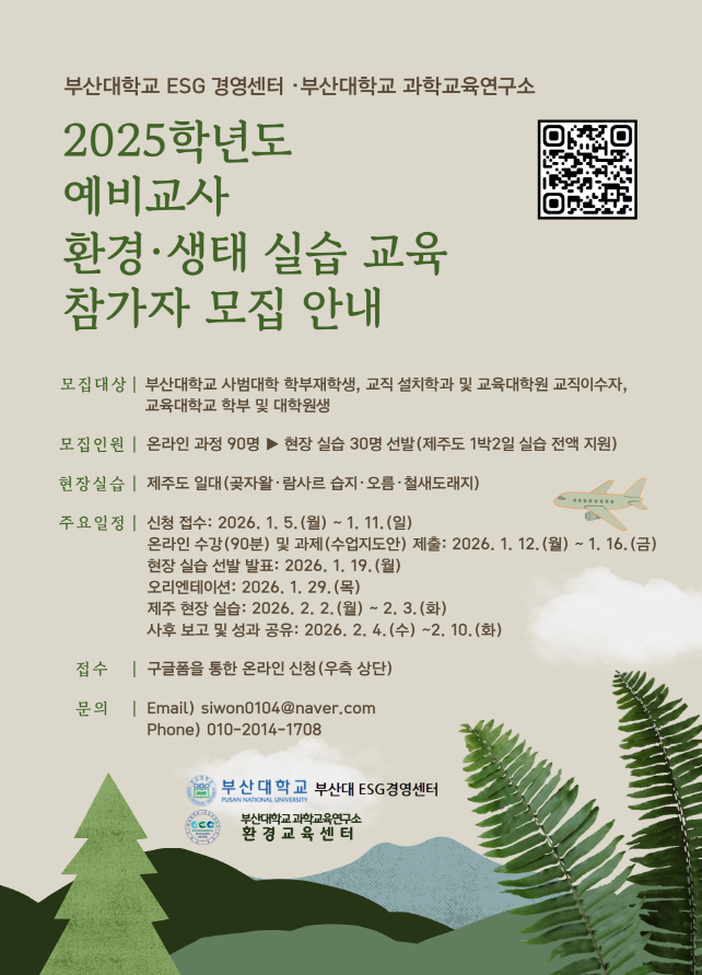[교직] 2025학년도 예비교사 환경.생태 실습 교육 참가자 모집 안내