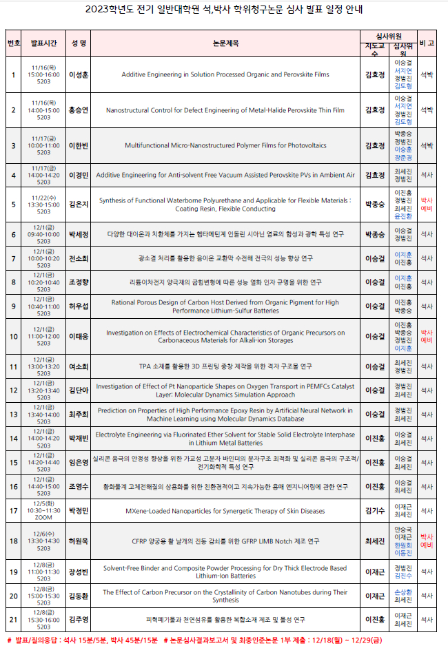 ※ 학과홈피/대학원/대학원학사공지 “2023 전기 학위청구논문 심사일정 안내” 공지 확인바랍니다.