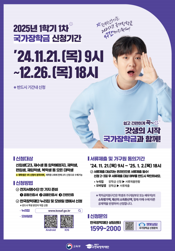 [장학] 2025-1 25-1. 국가장학금 1차 신청 안내 (11/21-12/26)