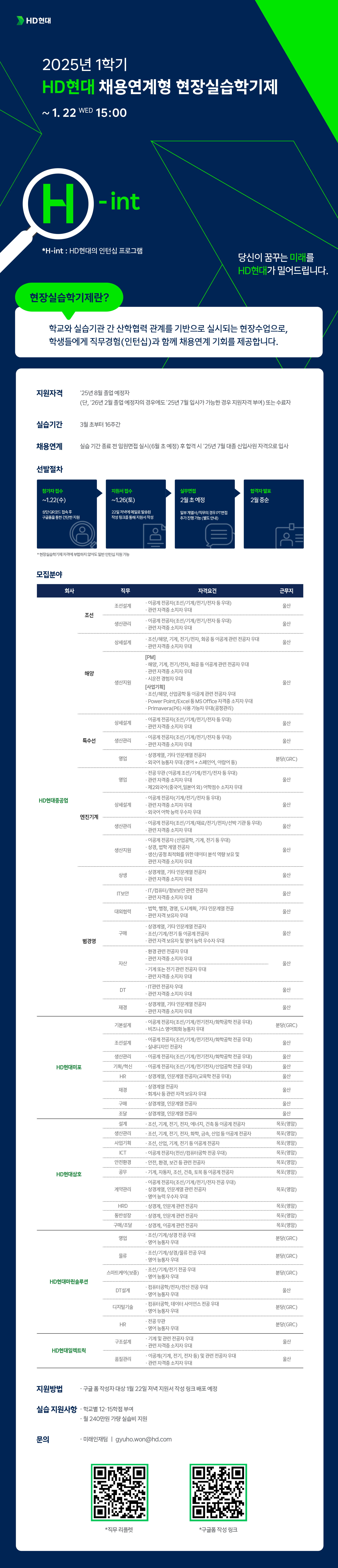 [HD현대] 2025년 1학기 HD현대 현장실습학기제 모집